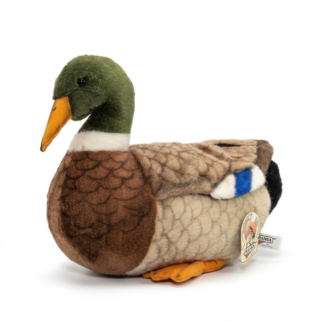 Imponująca, miękka kaczka w pełnym rozmiarze – realistyczna, przytulna i absolutnie nieodparta. Naturalne kolory upierzenia, staranne wykonanie i miękkie wypełnienie sprawiają, że każdy, kto ją zobaczy, będzie chciał ją przytulic.